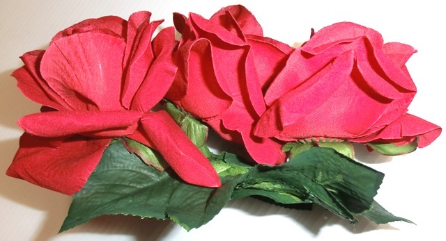 HOME ヘアクリップ深紅のバラ3輪 HC0020 深紅のバラ3輪ヘアークリップ 価格: ¥3,080 (税込) [ポイント還元 31ポイント~] 販売期間: 数量: 個 在庫 1個 返品についての詳細はこちら 大きさ 20cm×11cm (*^_^*) 新春のステージに豪華な3輪の薔薇はいかがですか(^-^) ! !