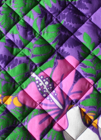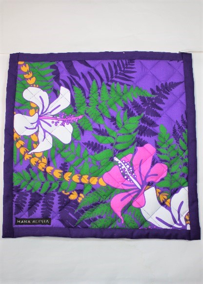 パープルに白・グリーンのハイビスカスとシダ柄のイプへケマットPale(パレ)額縁タイプ