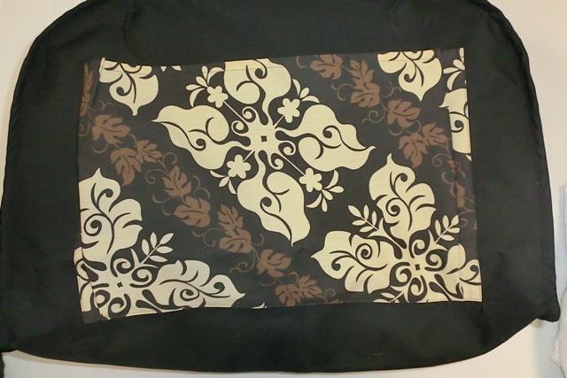 サイズは、イプ(Lサイズ)1個、ウリウリ1セット、パウスカート1着を入れられる大きさです。両サイドのポケットには、ペットボトル・汗拭きタオル・ウエットティッシュ・扇子など、すぐに取り出すことが出来ます。その他に外側には大きめのファスナー付きポケットがついています。地下鉄・電車・バスチケットや小銭など。内側には大小3つのポケットがついています。丈夫な芯を使って丁寧に作られているので、とてもしっかりしています。ハワイ旅行のセカンド用としても、大活躍 ✩✩✫