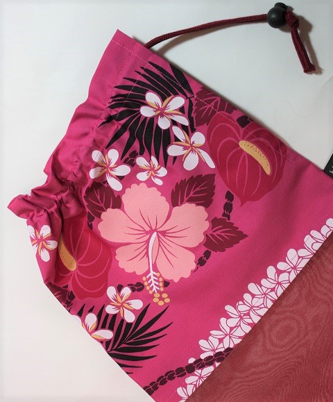 ピンク地にピンクのハイビスカスと白い小さなプルメリアがいっぱい。オ-ガンディ-使用のパウケ-ス ピンク地にピンクのハイビスカスと白い小さなプルメリアがいっぱい。オ-ガンディ-使用のパウケ-ス