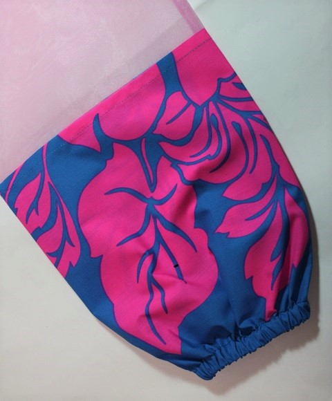 ブル-地に、ピンクの花柄。オ-ガンディ-使用のパウケ-ス ブル-地に、ピンクの花柄。オ-ガンディ-使用のパウケ-ス