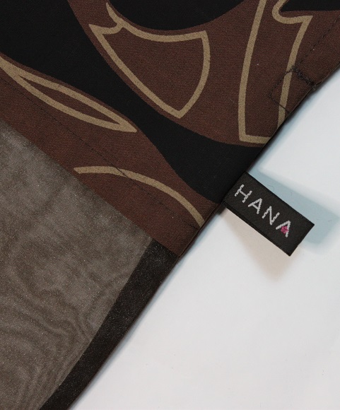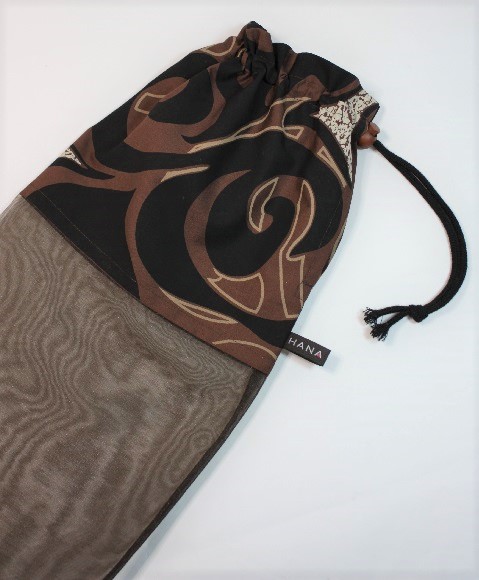 黒地に。茶、白、ベ-ジュのカヒコ模様。オ-ガンディ使用のパウケ-ス 黒地に。茶、白、ベ-ジュのカヒコ模様。オ-ガンディ使用のパウケ-ス