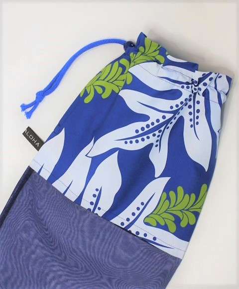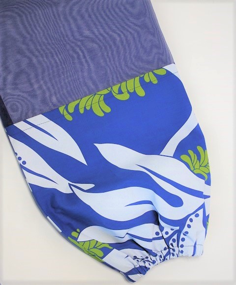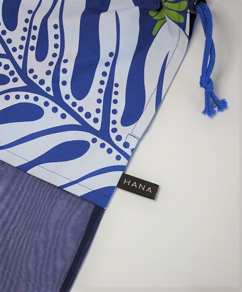 ブル-地に、白いラウアエが美しいオ-ガンディ-使用のパウケ-ス