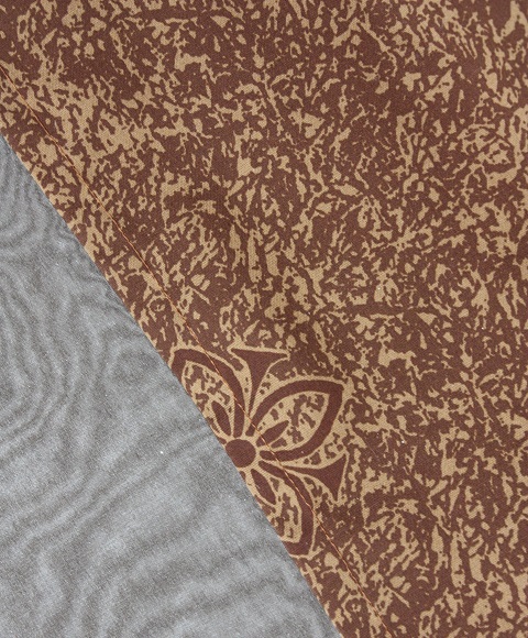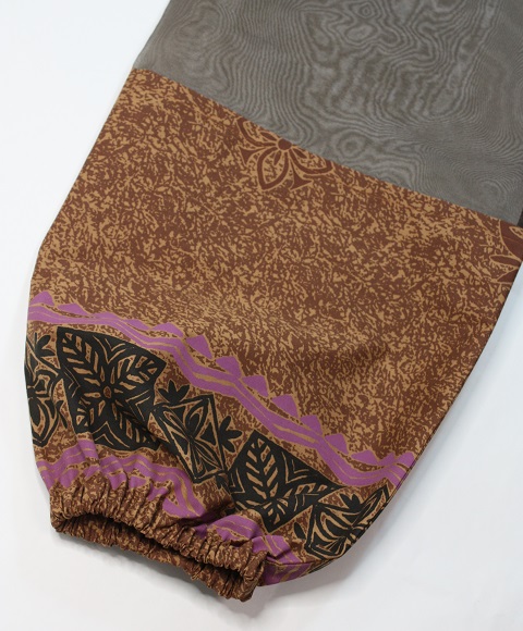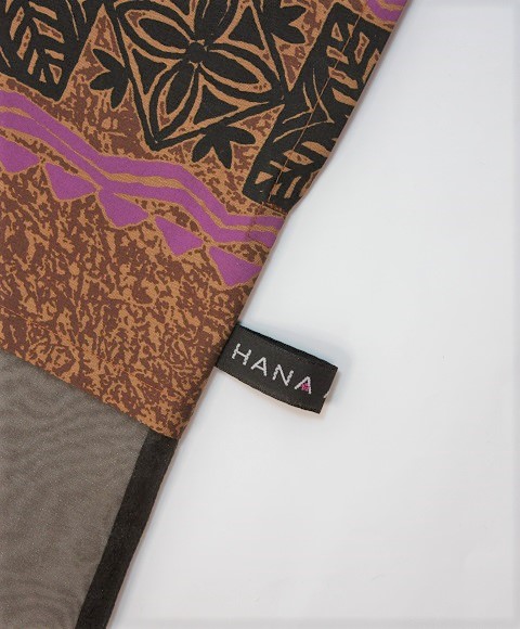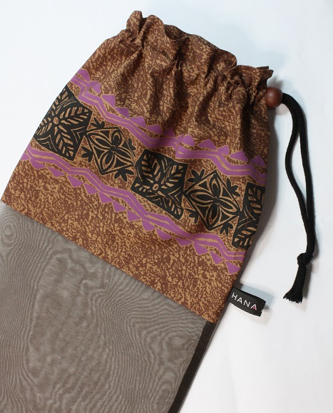 茶色地に黒、ピンク、のカヒコ模様のボーダ-柄。オ-ガンディ-使用のパウケ-ス 茶色地に黒、ピンク、のカヒコ模様のボーダ-柄。オ-ガンディ-使用のパウケ-ス