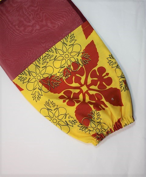 山吹色地に赤のカヒコ模様、すてきな赤いオ-ガンディ-使用のパウケ-ス