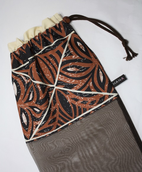 クリ-ム色地に海の神ホヌの模様、オ-ガンディ-使用のパウケース クリ-ム色地に海の神ホヌの模様、オ-ガンディ-使用のパウケース