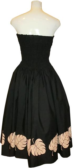 《ブラック》 ベージュのモンステラ柄 SD-0102 HANAALOHA オリジナルシャーリングドレス