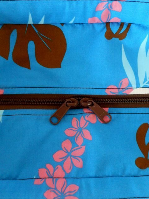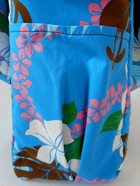 サイズは、イプ(Lサイズ)1個、ウリウリ1セット、パウスカート1着を入れられる大きさです。両サイドのポケットには、ペットボトル・汗拭きタオル・ウエットティッシュ・扇子など、すぐに取り出すことが出来ます。その他に外側には大きめのファスナー付きポケットがついています。地下鉄・電車・バスチケットや小銭など。内側には大小3つのポケットがついています。丈夫な芯を使って丁寧に作られているので、とてもしっかりしています。ハワイ旅行のセカンド用としても、大活躍 ✩✩✼