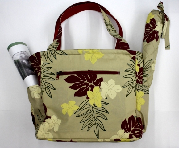 サイズは、イプ(Lサイズ)1個、ウリウリ1セット、パウスカート1着を入れられる大きさです。両サイドのポケットには、ペットボトル・汗拭きタオル・ウエットティッシュ・扇子など、すぐに取り出すことが出来ます。その他に外側には大きめのファスナー付きポケットがついています。地下鉄・電車・バスチケットや小銭など。内側には大小3つのポケットがついています。丈夫な芯を使って丁寧に作られているので、とてもしっかりしています。ハワイ旅行のセカンド用としても、大活躍 ✩✩✮