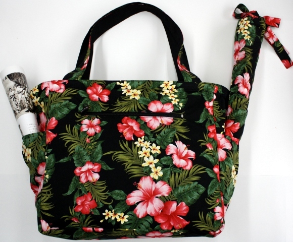 サイズは、イプ(Lサイズ)1個、ウリウリ1セット、パウスカート1着を入れられる大きさです。両サイドのポケットには、ペットボトル・汗拭きタオル・ウエットティッシュ・扇子など、すぐに取り出すことが出来ます。その他に外側には大きめのファスナー付きポケットがついています。地下鉄・電車・バスチケットや小銭など。内側には大小3つのポケットがついています。丈夫な芯を使って丁寧に作られているので、とてもしっかりしています。ハワイ旅行のセカンド用としても、大活躍 ✩✩✱